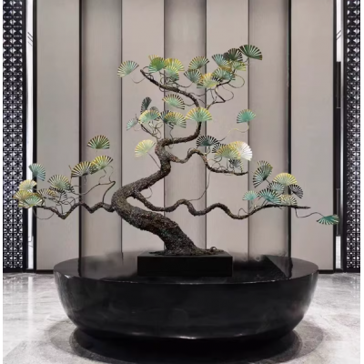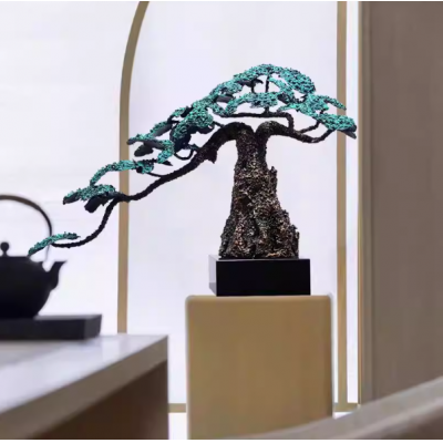 铁艺金属迎客松摆件